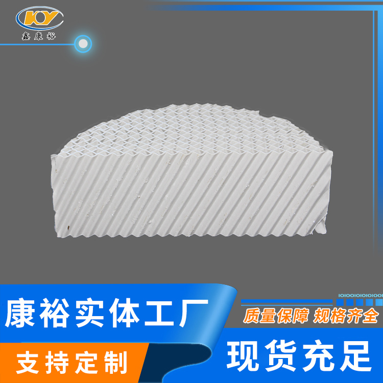 陶瓷波紋填料是一種新型規整填料,它是由許多具有相同幾何形狀的填料單元體組成。由于陶瓷的結構,具有良好的親水性能,其表面可形成極薄的液膜的湍動及氣流的傾斜曲折通道能氣流但又不阻擋氣流使陶瓷填料能與金屬填料相匹敵,而其耐腐蝕、耐高溫性能金屬填料卻無法相比。表面結構有良好的濕潤性能,能使液體加快流動、使填料滯液量降至低。從而降低了過熱、聚合和結焦的機會。