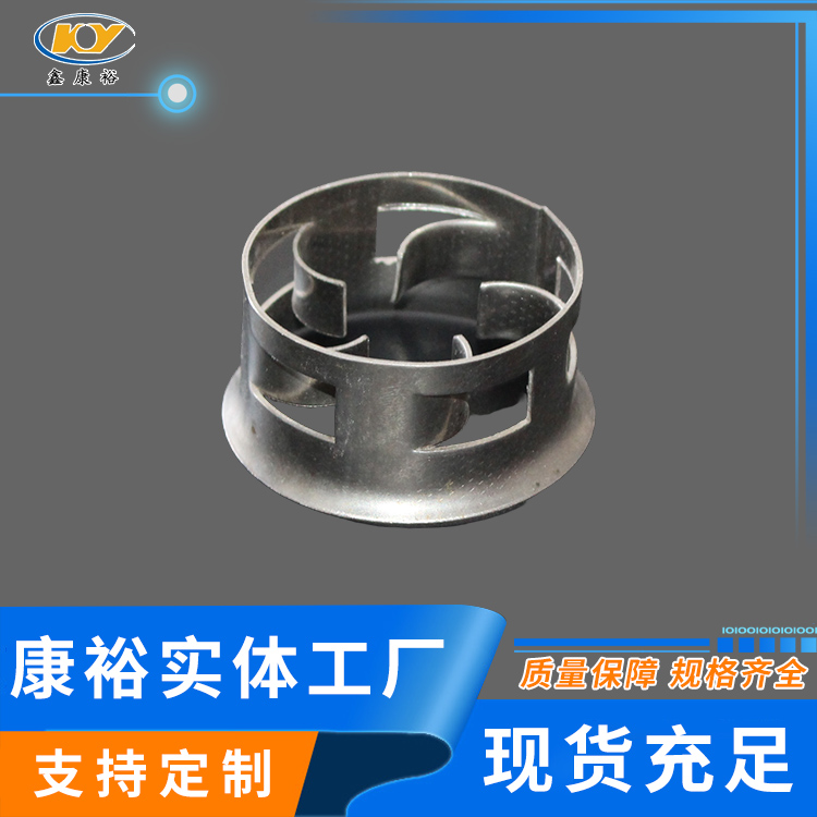 金屬階梯環至大限度保障其環面垂直而非平行,這種設計運用在傳質中優勢更為突出。因為反應效率取決于接觸面的大小。平行面的設計會使環內側面接觸不到液體,從而形成干面。干面在傳質中幾乎不起作用,但是金屬階梯環的垂直設計大大降低干面的可能性,從而有效的提高效率。